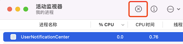 打开「活动监视器」,结束掉 UserNotificationCenter 进程;